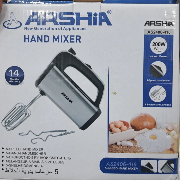 همزن دستی ارشیا با موتور 200واتی مدل As 2406_416 دارای دومدل سری خامه زن و خمیر زن 5 سرعته قدرت بالا کیفیت عالی